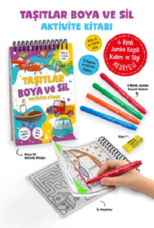 Taşıtlar Boya ve Sil Aktivite Kitabı 3 Yaş